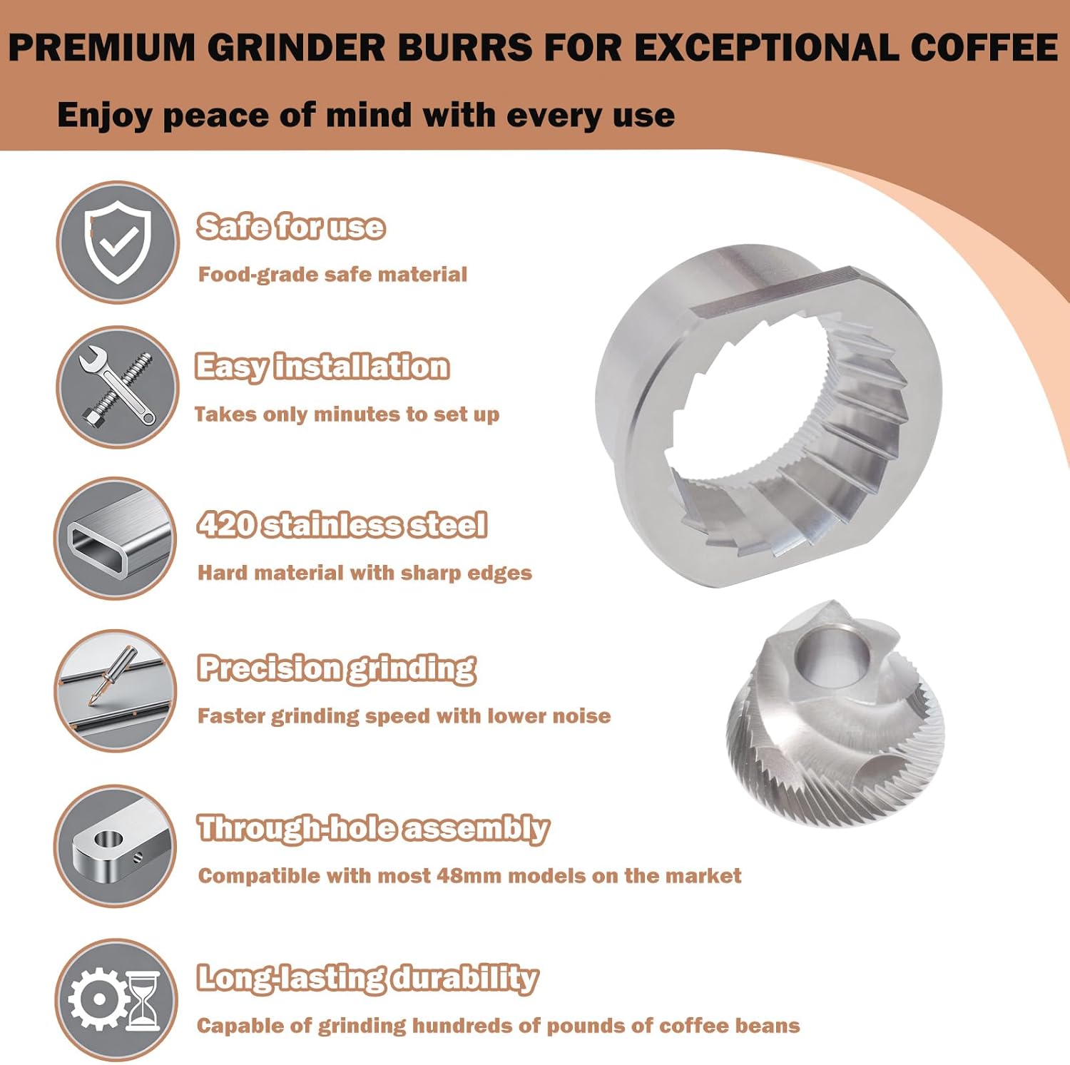 Conical Grinder Burr Set Replacement Compatible for Breville Espresso Machines Coffee Grinder Burr for BES 870/875/876/878/980(Pre 1926 PDC)(5 star),with Phillips & Flathead Screwdrivers and Brushes