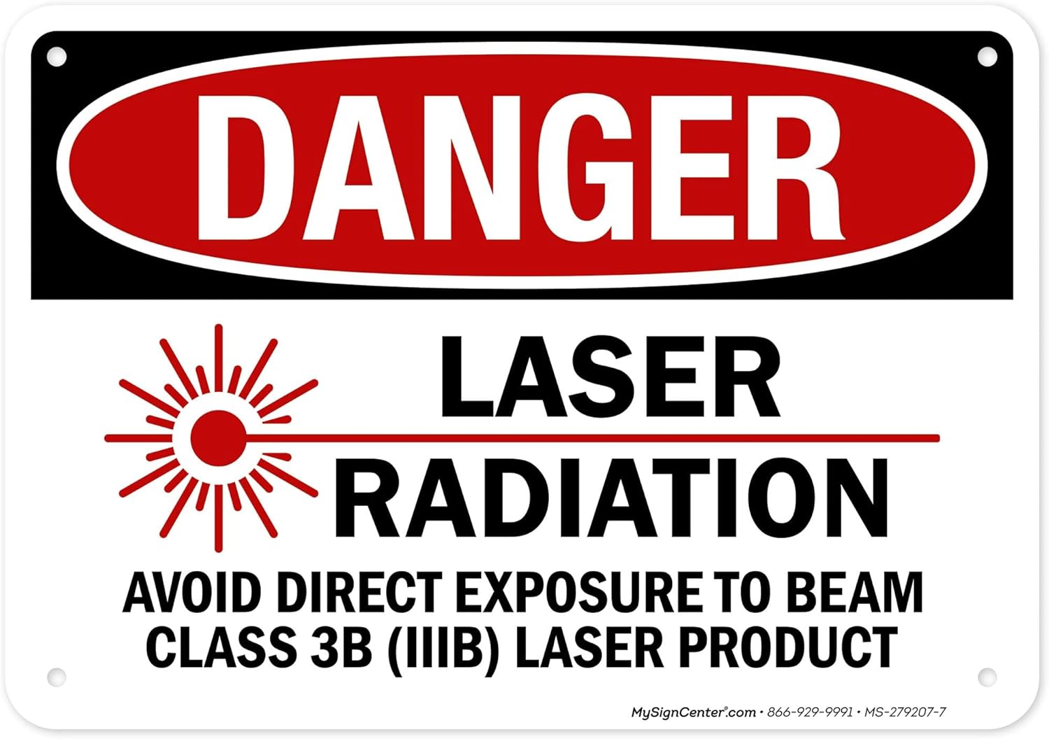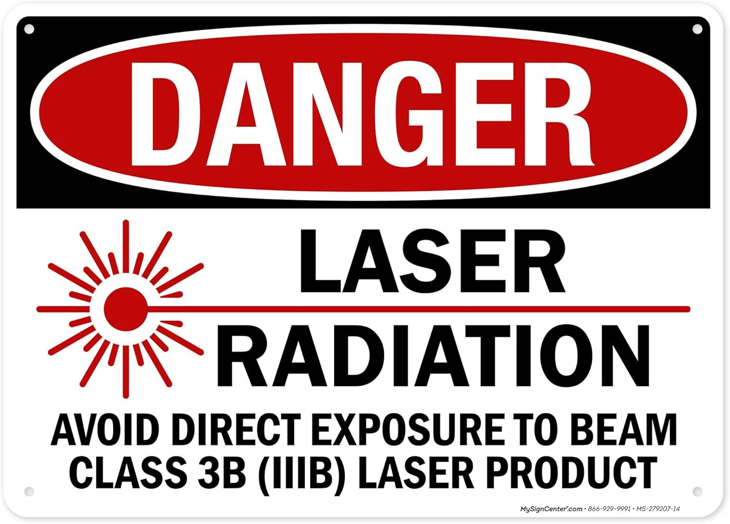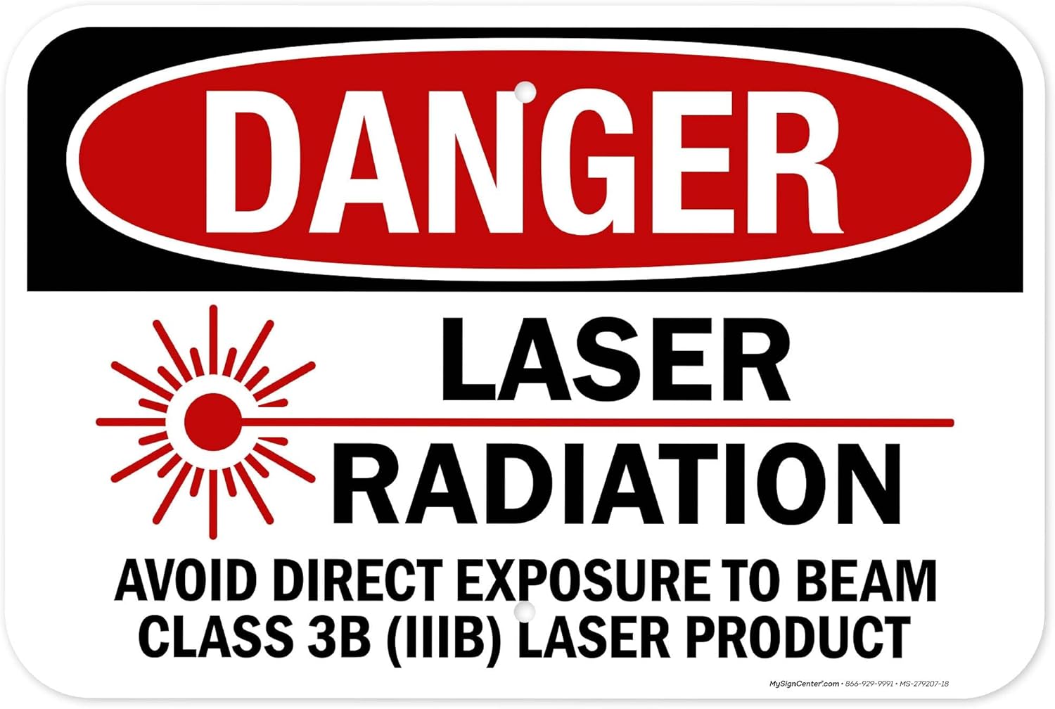 Danger Laser Radiation Avoid Direct Exposure To Beam Class 3B Sign, 12x18 Inches, 55 mil thick HDPS (high density polystyrene), Made in USA by My Sign Center