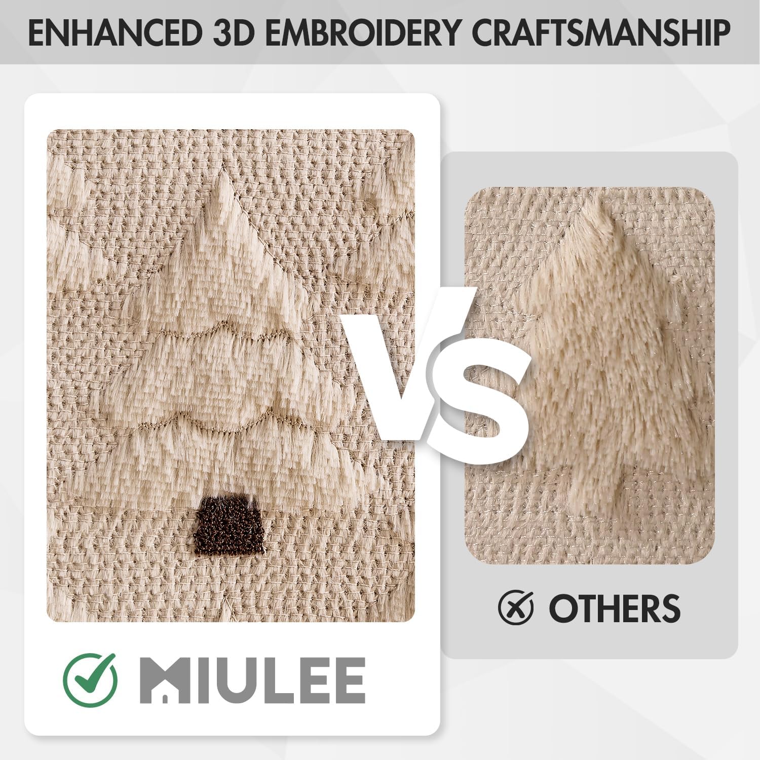 Unique 3D Festive Design: Adorn your home with this eye-catching pillow cover featuring a raised Christmas tree design. The intricately embroidered tree trunk adds elegant texture, creating a lifelike holiday centerpiece for your living room or bedroom.