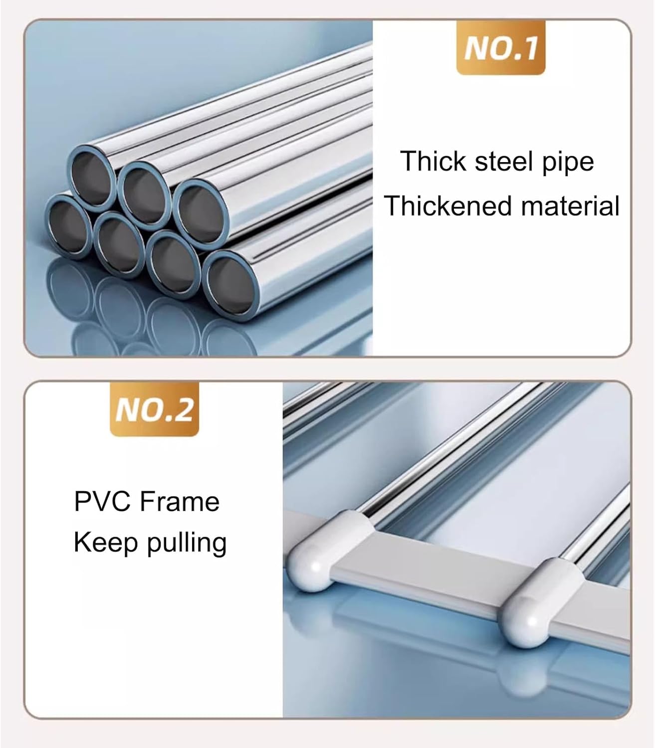 The multifunctional magic pants hangers measures 14.17 x 14 inches. The main material of the multifunctional magic cloud ladder pants rack is thickened stainless steel pipe and PVC material, which is a reliable material, sturdy and durable, and has upgraded load-bearing capacity. Round tube design, not easy to damage clothes, not easy to leave marks, not easy to wrinkle; Humanized design, reasonable spacing, easy hanging and retrieval. They are perfect for hanging jeans, bra, skirts, pants, shorts, ties, work trousers, slacks, leggings, and more.