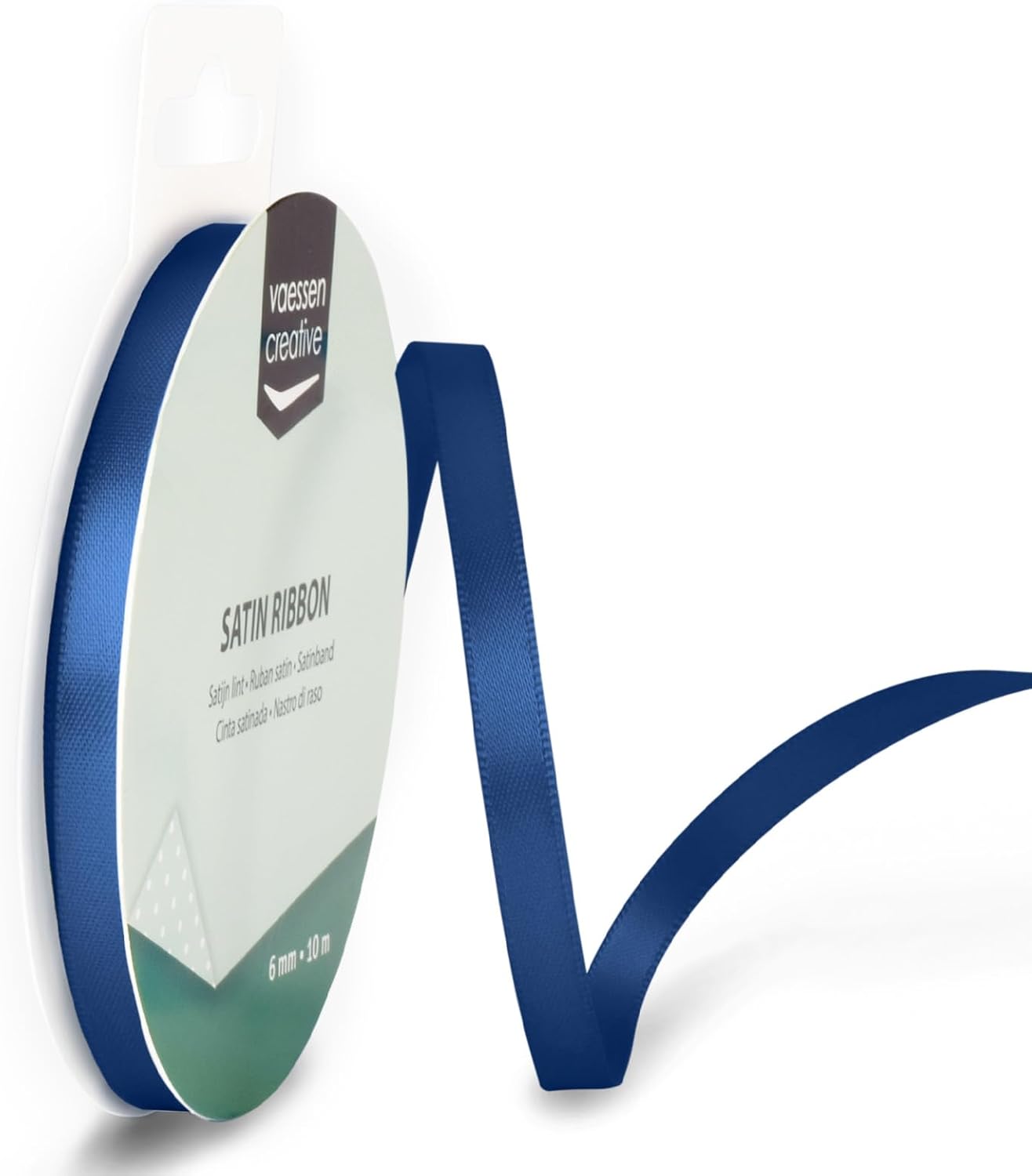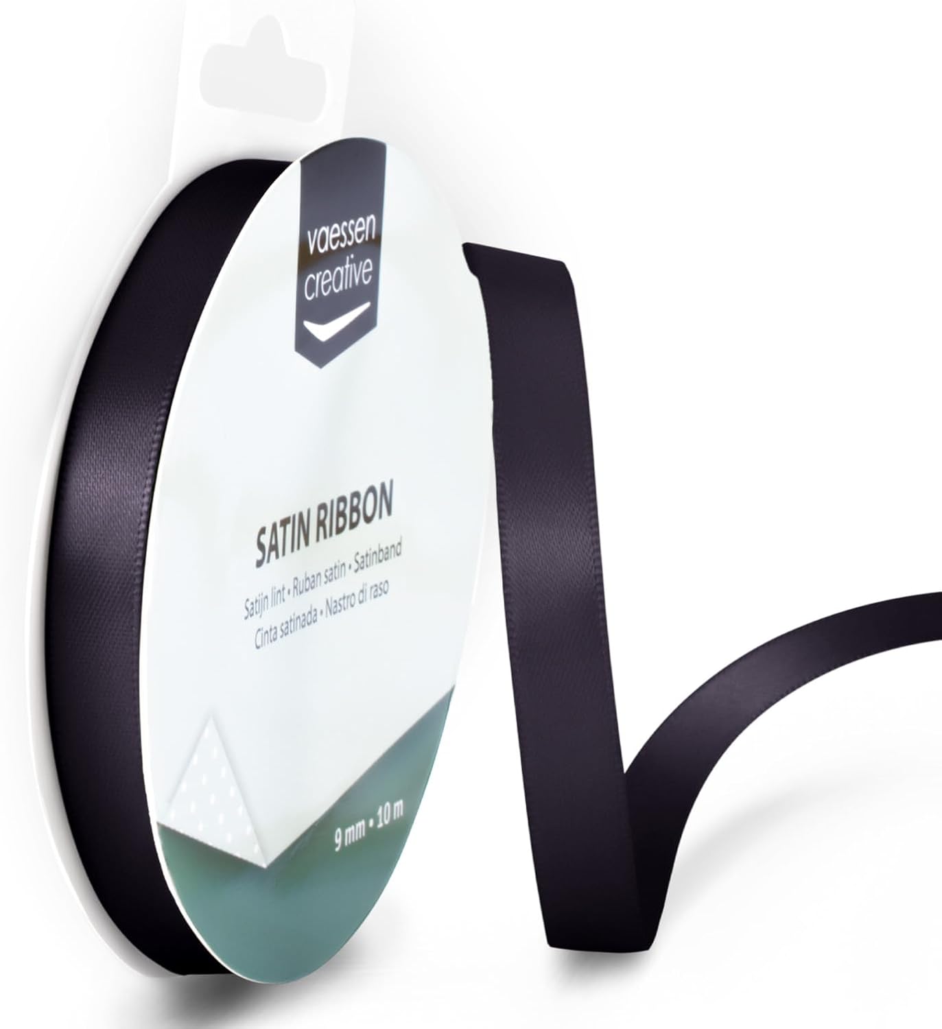 High-density ribbon with a double-sided shiny and smooth surface for an elegant satin sheen and silky soft touch. The stitched edges give the ribbon a neat finish. Crafters will enjoy using this lovely ribbon to embellish scrapbook pages, thread through cards, add as stylish cake board edging or use to tie up gifts and sachets. This stunning ribbon is sure to impress. Suitable for beginners and more experienced crafters of all ages. The material is flexible and can be used to make many different shapes. The high-quality ribbon comes on a durable round spool that can be hung up or stacked with other colours for easy storage. To make working with the ribbon as effortless as possible, there are special slots on either side of the spool to place the end of the ribbon after use so that you can keep your material wound up nice and tidy. Vaessen Creative Satin Ribbon is available in 24 bright colours. Choose your favourite shades in the options above. From bold colours that would typically be used for Christmas decorations, Father’s Day cards or Halloween decor to softer pastel tones for Easter celebrations, Wedding invitations and new-born gifts. You’re sure to find a fitting match for your project. Besides a 9mm width, the satin ribbon is also available in two other widths; 3mm and 6mm. This pack contains 1 spool of ribbon in size 9 mm x 10 m .